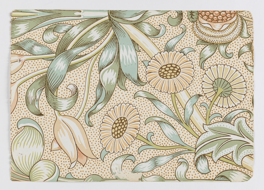 Sidewall - Sample, Lily Pomegranate; Designed by Morris & Co. (United Kingdom); Manufactured by Jeffrey & Company (United Kingdom); block-printed paper; H x W x D: 27 x 37.5 x 6 cm (10 5/8 x 14 3/4 x 2 3/8 in.); Museum purchase from Smithsonian Regents Collections Acquisition Fund; 1980-46-1-18