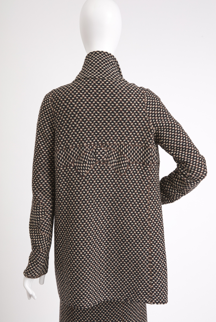 This suit exhibits Chanel’s soft tailoring, which brought a casual elegance to the female suit. This design was owned by Ann Andrews, a stage actress; admired for her beauty, she also appeared in major fashion magazines as a model.