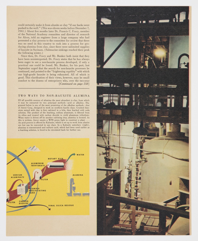 <ref name=CH>{{cite web |url=https://www-5.collection.cooperhewitt.org/objects/1108723009/ |title=Print, Two Ways to Non-Bauxite Alumina, Page 139 from Fortune |author=Cooper Hewitt, Smithsonian Design Museum |accessdate=20 December 2025 |publisher=Smithsonian Institution}}</ref>