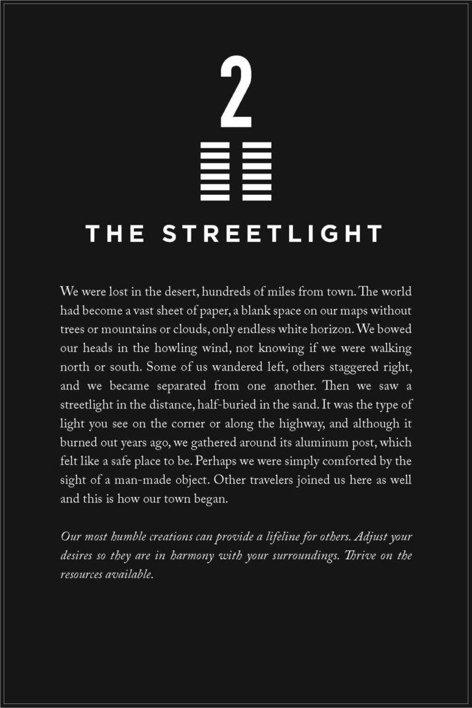 Graphic designer Candy Chang collaborated with the Porch Light Initiative—which takes a public-arts approach to community healing—to embed an interactive mural promoting mental well-being in the center of Philadelphia. Three stories high, the mural reinterprets the classic Book of Changes (I Ching) as a tool for introspection. Sixty-four I Ching hexagram characters and related fable-like stories frame the wall. Text invites the public to consider a situation, spin the street-level dial to reflect on the selected story, and see the world anew.