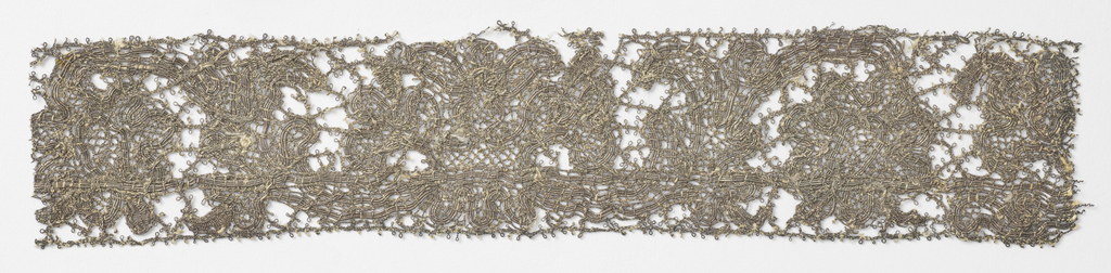 Fragment (Italy), 17th century; metallic-wrapped linen thread; H x W: 5.9 x 28.3 cm (2 5/16 x 11 1/8 in. ); Gift of Eleanor and Sarah Hewitt; 1896-1-104