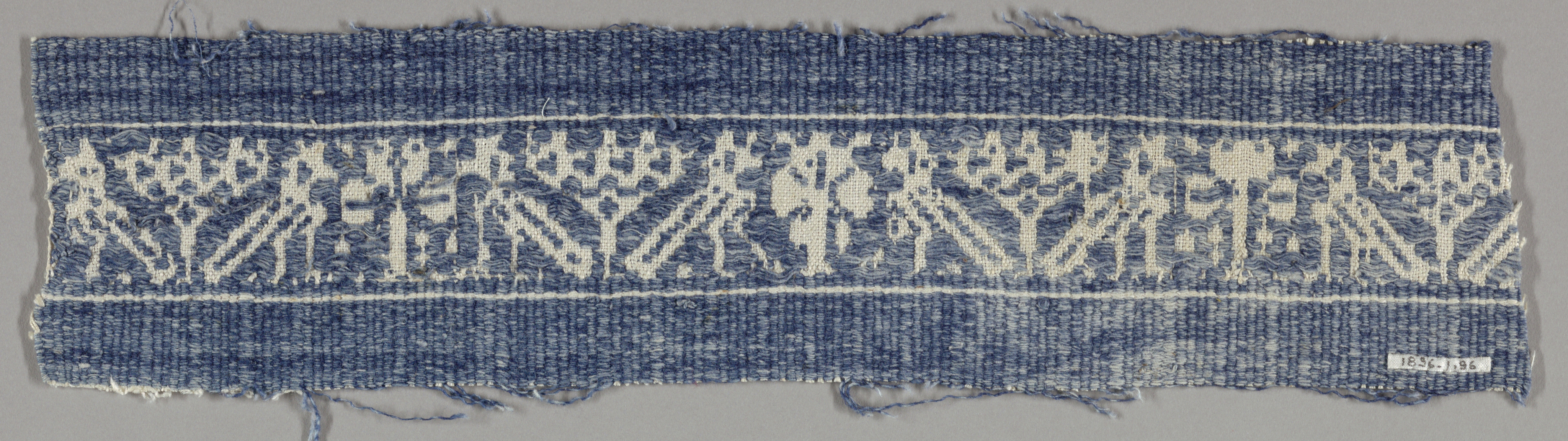 This is a Fragment. It is dated 17th century. Its medium is linen, cotton and its technique is plain weave with supplementary weft. It is a part of the Textiles department.