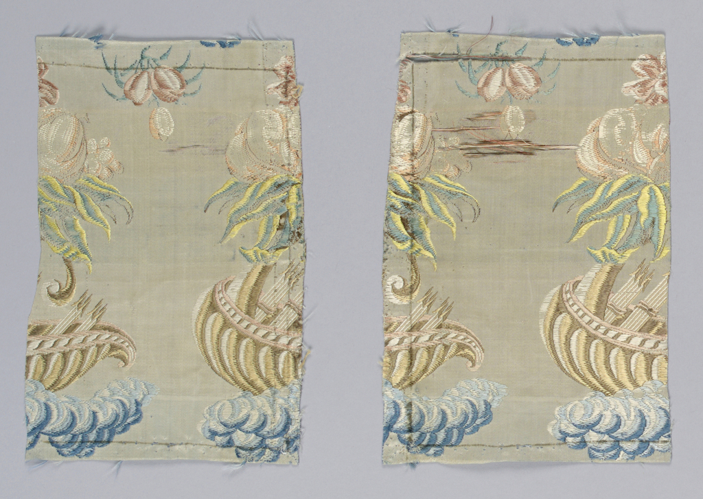 Fragment; silk; H x W (a): 18.6 × 12.3 cm (7 5/16 × 4 13/16 in.) H x W (b): 18.2 × 12.6 cm (7 3/16 × 4 15/16 in.); Gift of Elsie de Wolfe; 1896-25-2-a,b