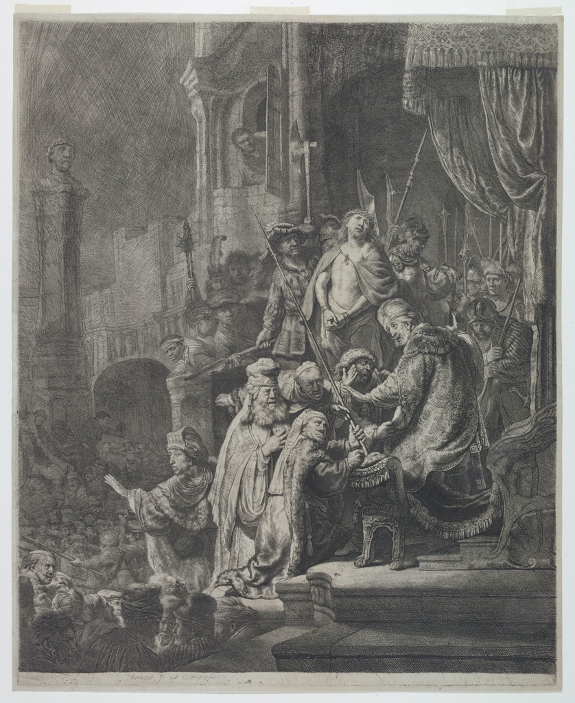 Print, Christ Before Pilate: The Large Plate; Print Maker: Rembrandt Harmensz van Rijn (Dutch, 1606–1669); Netherlands; etching on laid paper; 55.7 × 45.3 cm (21 15/16 × 17 13/16 in.); Bequest of George Campbell Cooper; 1896-3-156