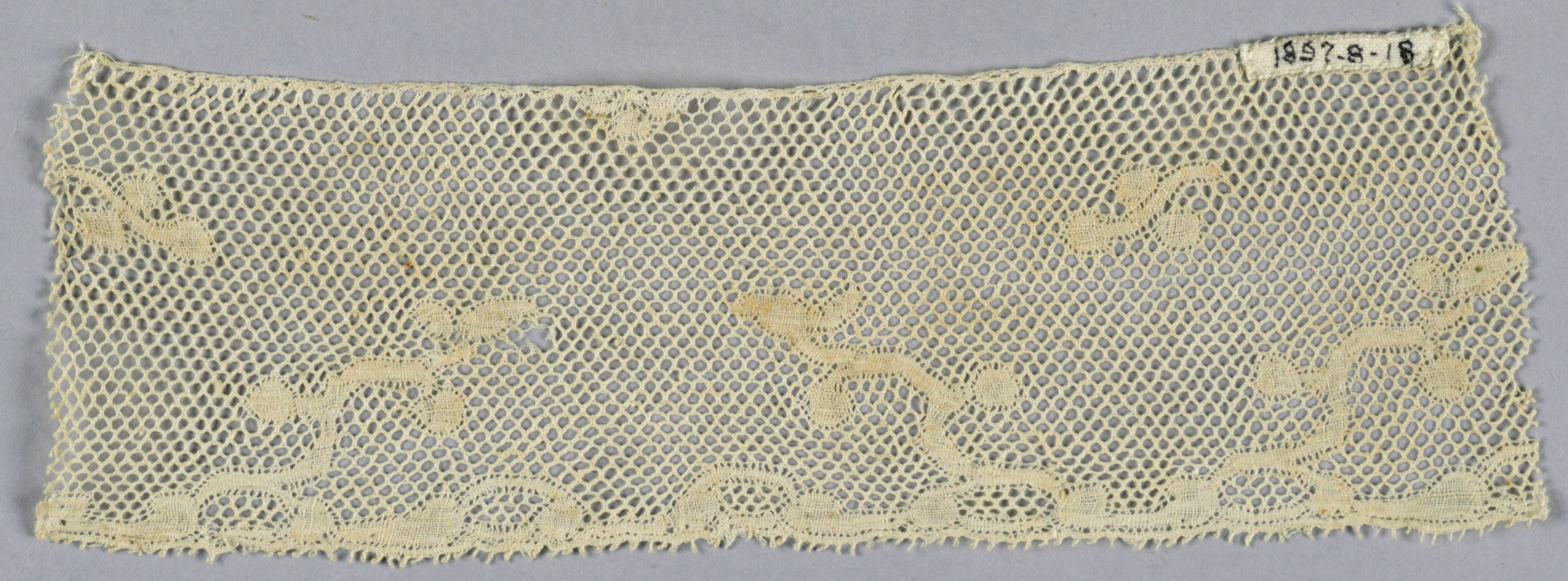 This is a Fragment. It is dated 18th century. Its medium is linen and its technique is bobbin lace. It is a part of the Textiles department.