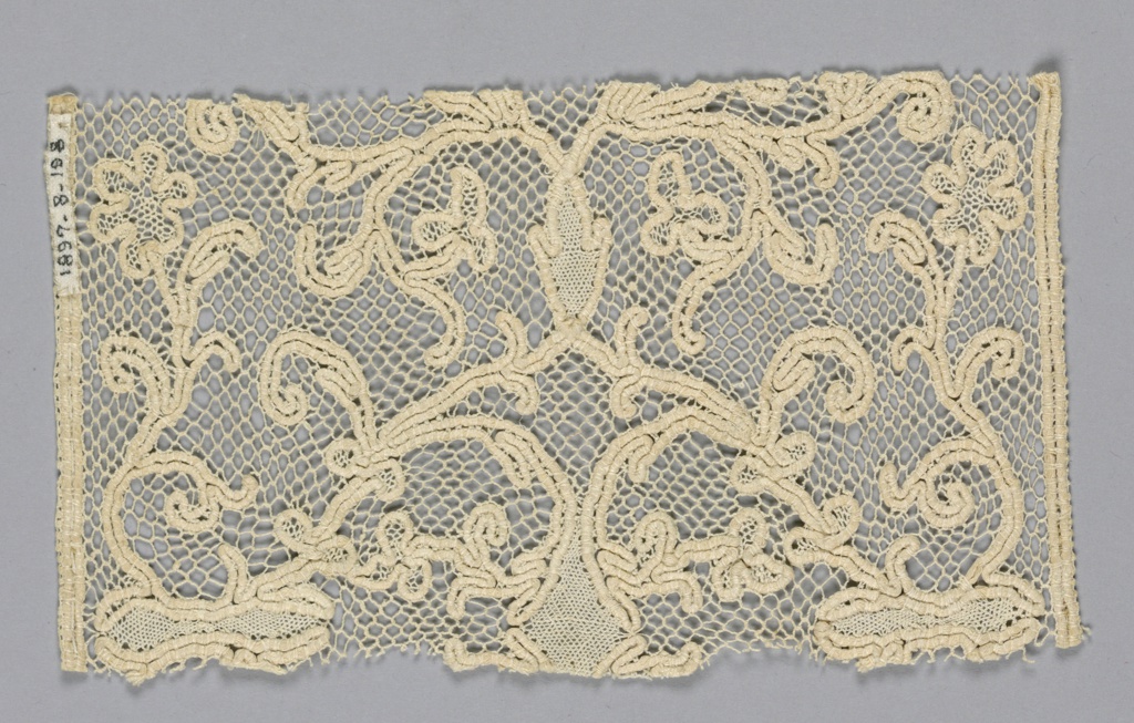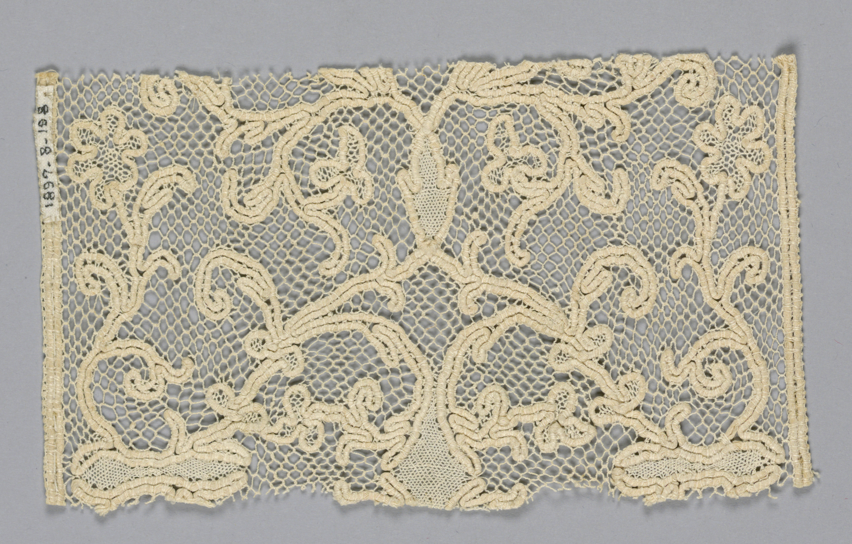 This is a Fragment. It is dated 18th century (?). Its medium is linen and its technique is bobbin lace. It is a part of the Textiles department.