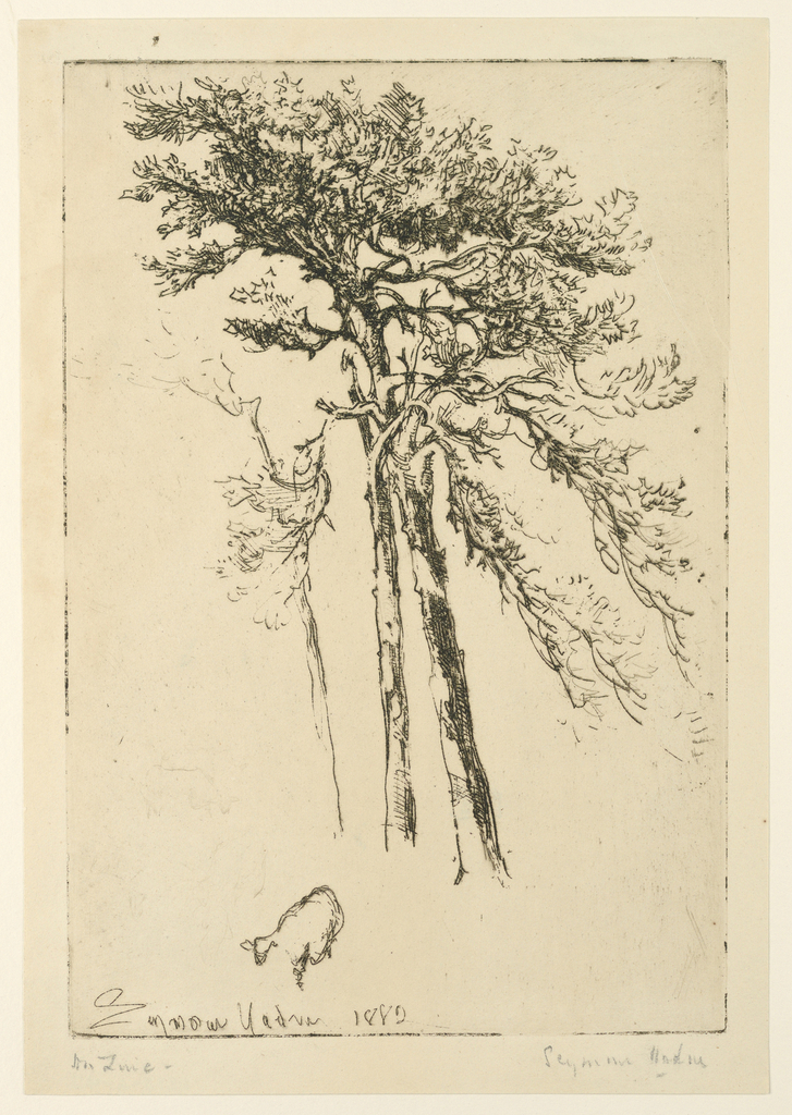 Print, Scotch Firs; Print Maker: Francis Seymour Haden (English, 1818–1910); England; etching on paper; 29 × 20 cm (11 7/16 × 7 7/8 in.); Gift of Samuel P. Avery; 1898-6-42