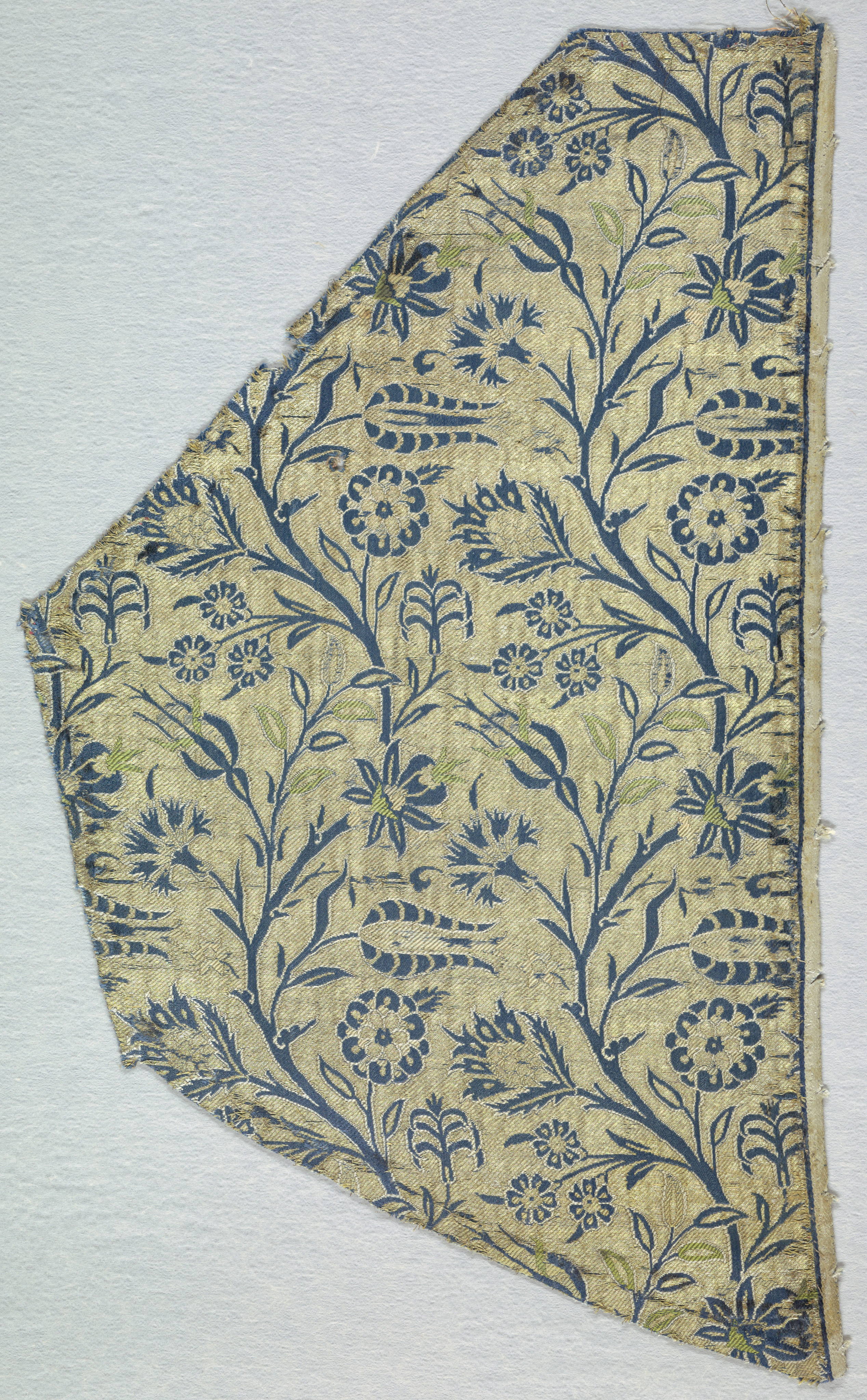 This is a Textile. It is dated 17th century. Its medium is silk, metallic thread and its technique is compound twill. It is a part of the Textiles department.