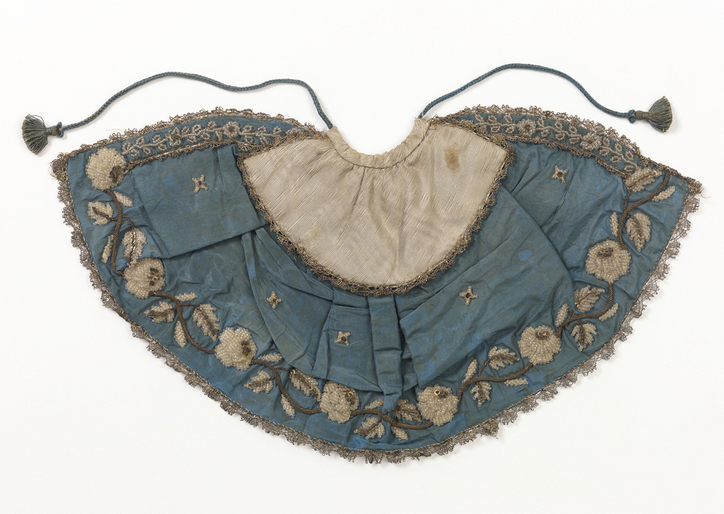Cape For An Ecclesiastical Figurine (France); silk, metallic yarns, glass beads; H x W: 20.5 x 38.4 cm (8 1/16 x 15 1/8 in.); Gift of Maria Cannon; 1899-2-5