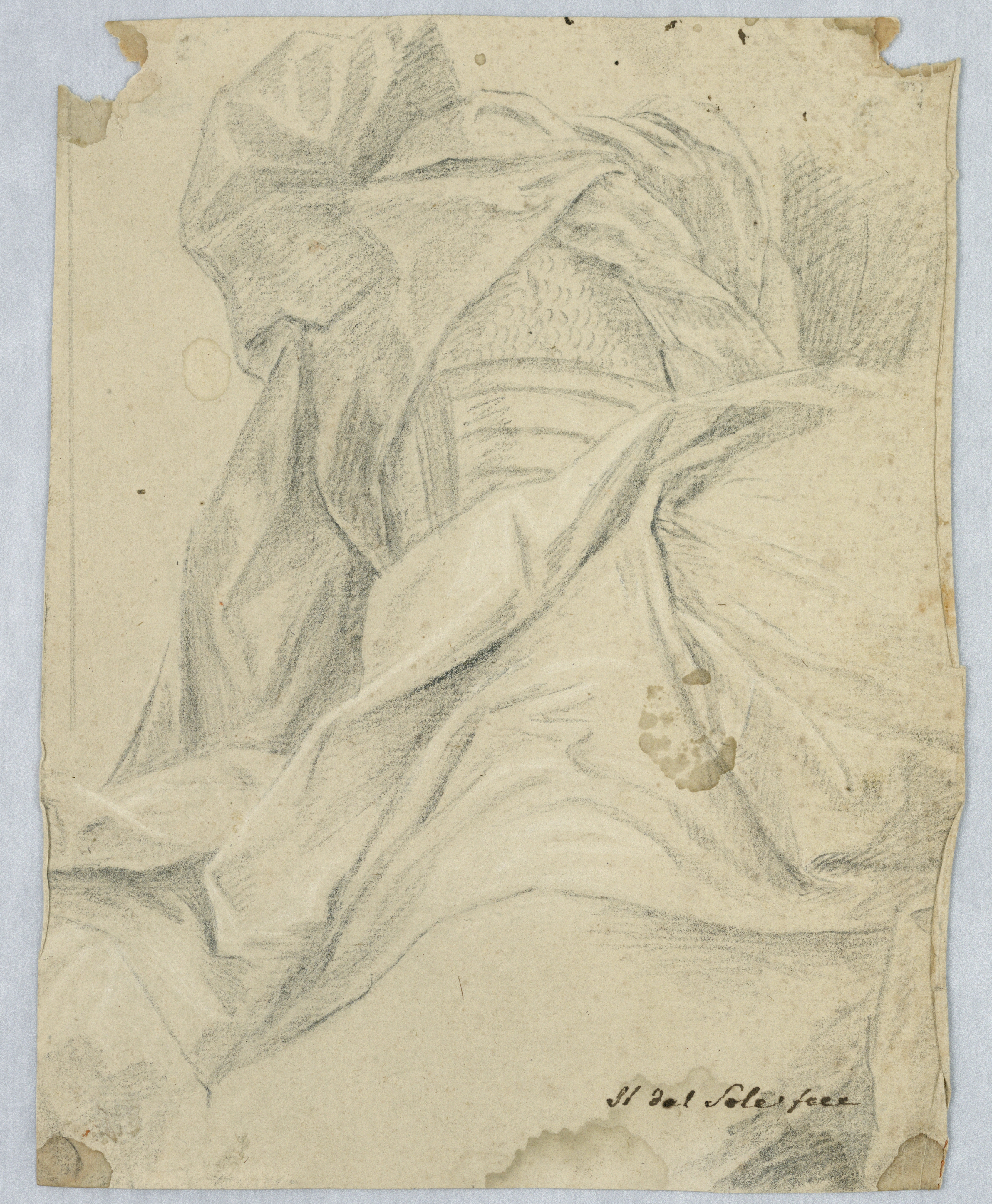 Drawing, Study of Drapery; Giovani Gioseffo dal Sole (Italian, 1654 - 1719); Italy; chalk on paper; H x W: 19.7 × 15.5 cm (7 3/4 × 6 1/8 in.); Museum purchase through gift of various donors; 1901-39-1560