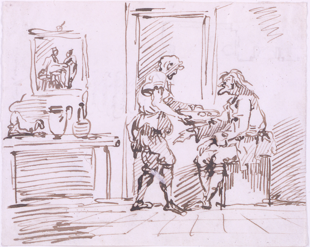 Drawing, A genre scene; Carlo Marchionni (Italian, 1702–1786); Italy; pen and black ink on laid paper; 17.9 x 14.5 cm (7 1/16 x 5 11/16 in.); Museum purchase through gift of various donors; 1901-39-1978