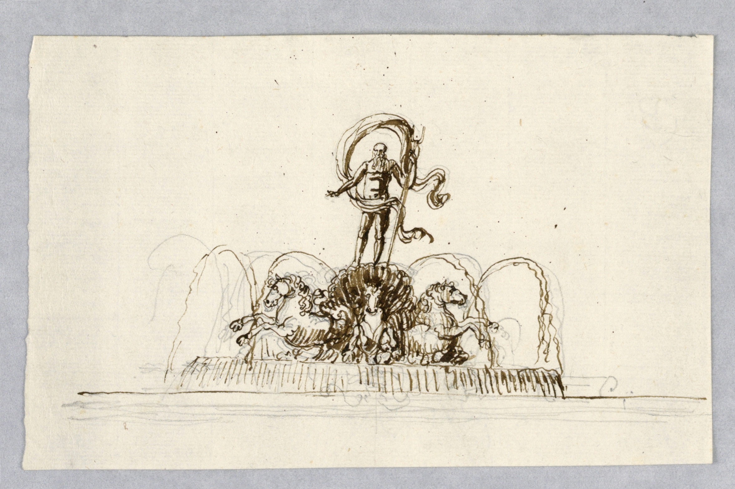 Drawing, Project for a Fountain; Italy; pen and brown ink with, traces of graphite on off-white laid paper; H x W: 18.6 × 11.8 cm (7 5/16 × 4 5/8 in.); Museum purchase through gift of various donors; 1901-39-359