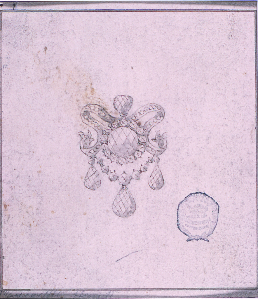 Drawing, Brooch; Italy; pen and ink, brush and watercolor on paper; H x W: 11.4 × 10.4 cm (4 1/2 × 4 1/8 in.); Museum purchase through gift of various donors; 1901-39-830