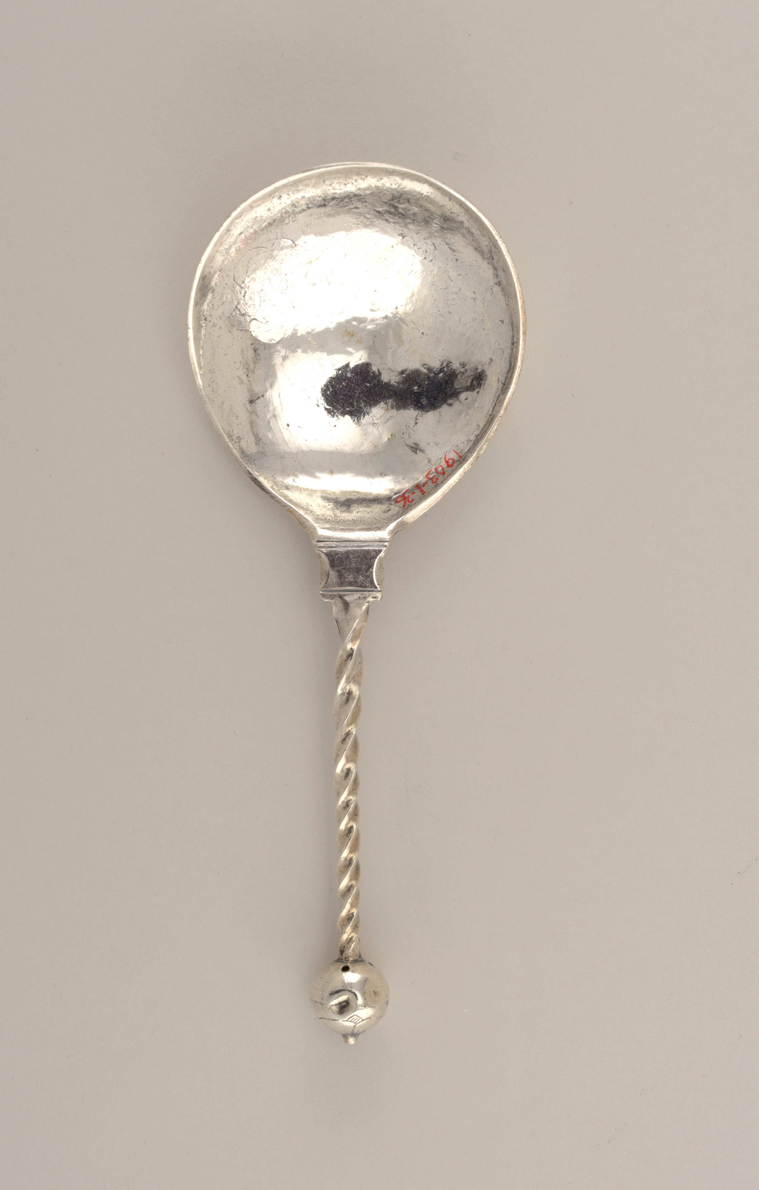 Spoon with Twisted Stem Spoon; Made by Erik Barck (1697 – 1718); Sweden; silver; L x W x D: 13.5 × 5.2 × 2.6 cm (5 5/16 in. × 2 1/16 in. × 1 in.); Gift of Samuel P. Avery; 1903-1-36