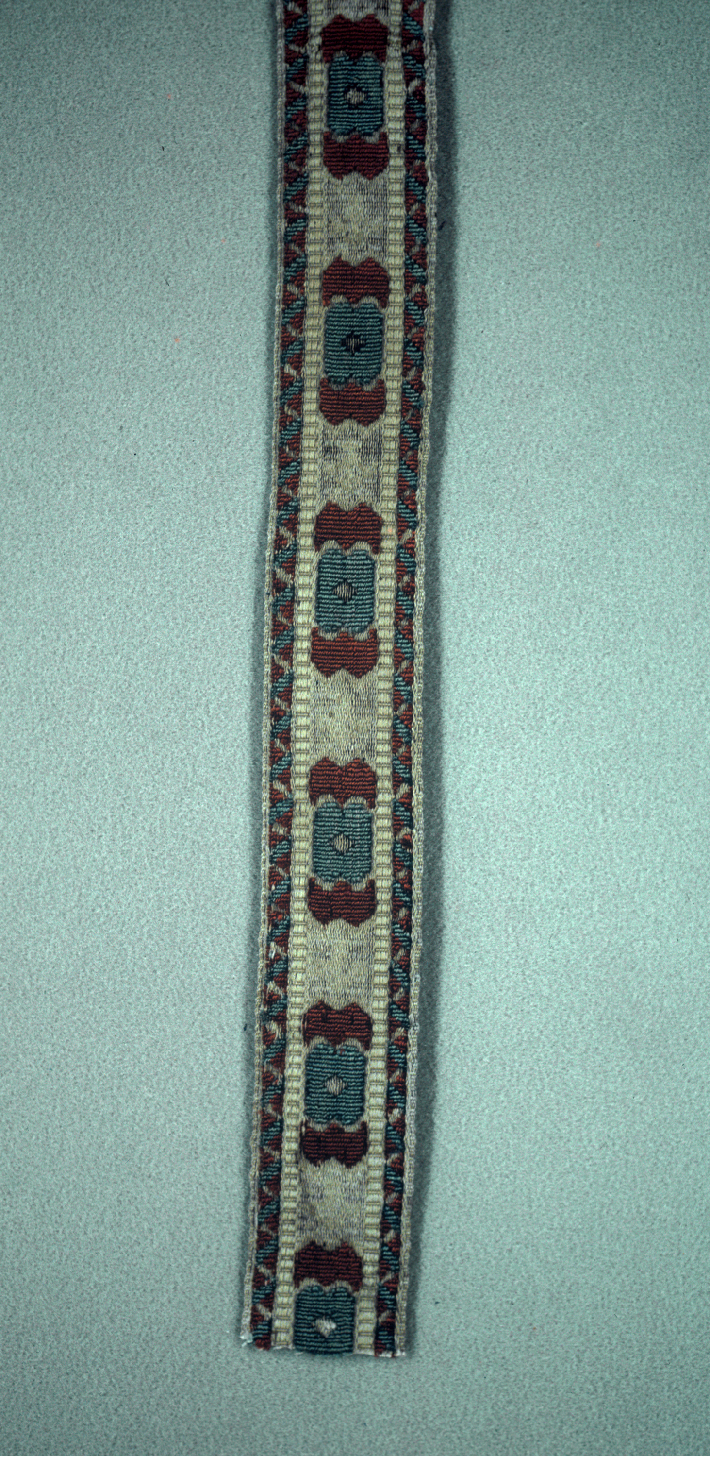 This is a Trimming. It is dated 17th century and we acquired it in 1905. Its medium is silk and its technique is cut, uncut and voided velvet. It is a part of the Textiles department.