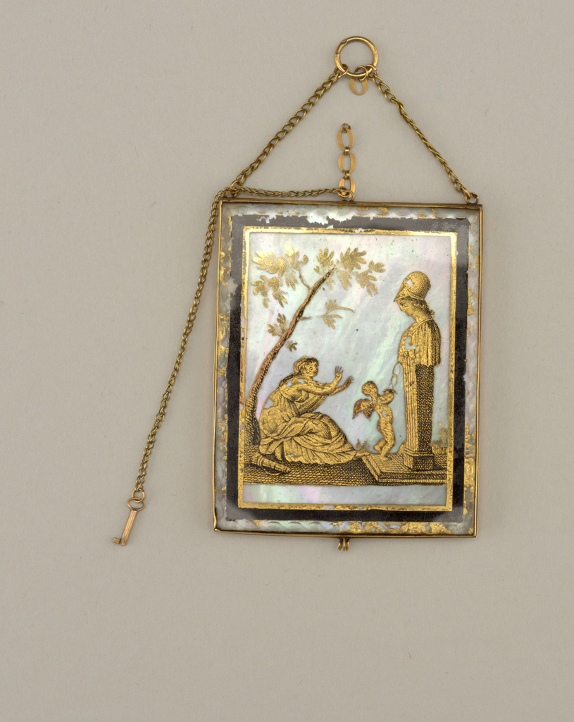 Locket; mother-of-pearl; H x W x D: 6 x 4.7 x 0.4 cm (2 3/8 x 1 7/8 x 3/16 in.); Bequest of Katherine Strong Welman; 1908-23-27