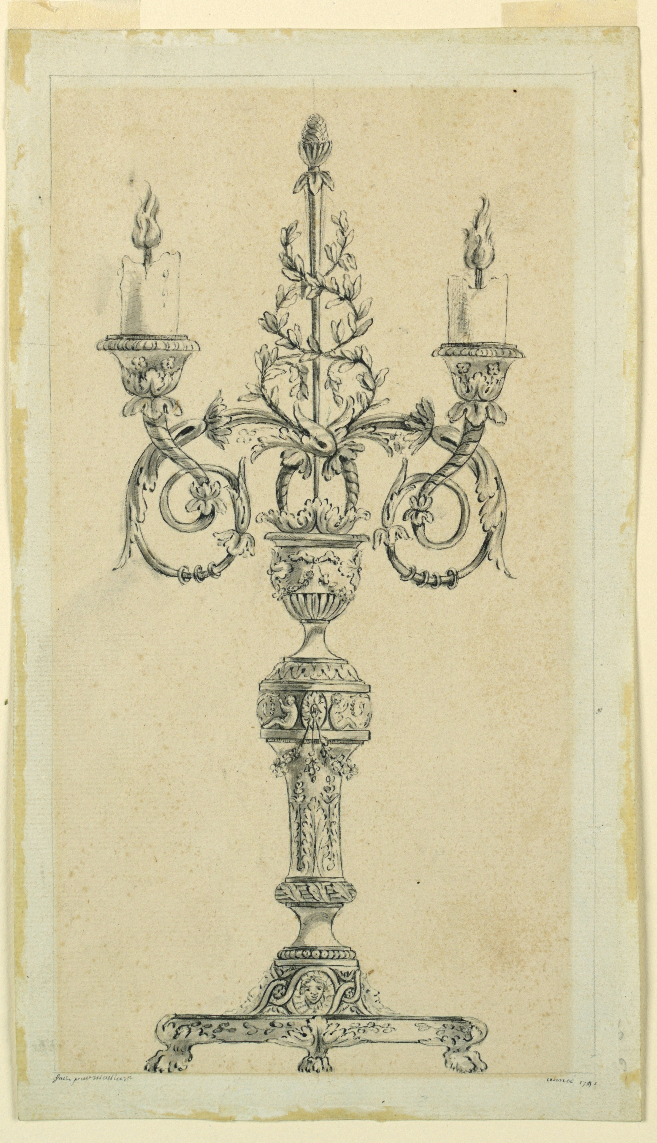 Drawing, Project for a candelabrum; France; pen and ink, brush and wash on paper; 25.6 x 17 cm (10 1/16 x 6 11/16 in.); Purchased for the Museum by the Advisory Council; 1908-26-145
