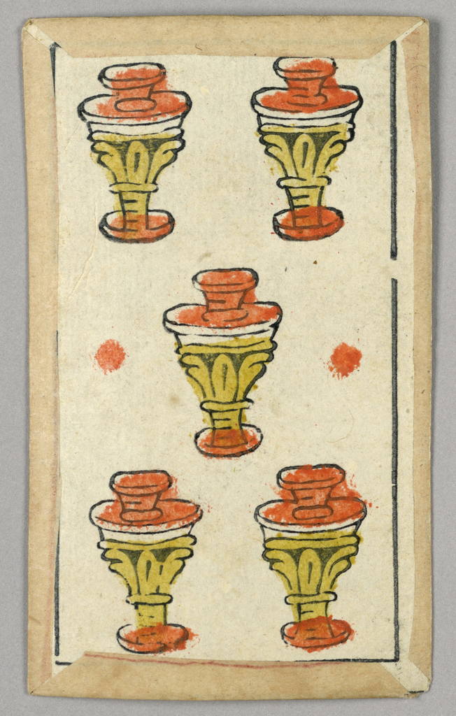 This is a Playing Card. It is dated 17th century and we acquired it in 1909. Its medium is stencil-colored woodblock print. It is a part of the Drawings, Prints, and Graphic Design department.