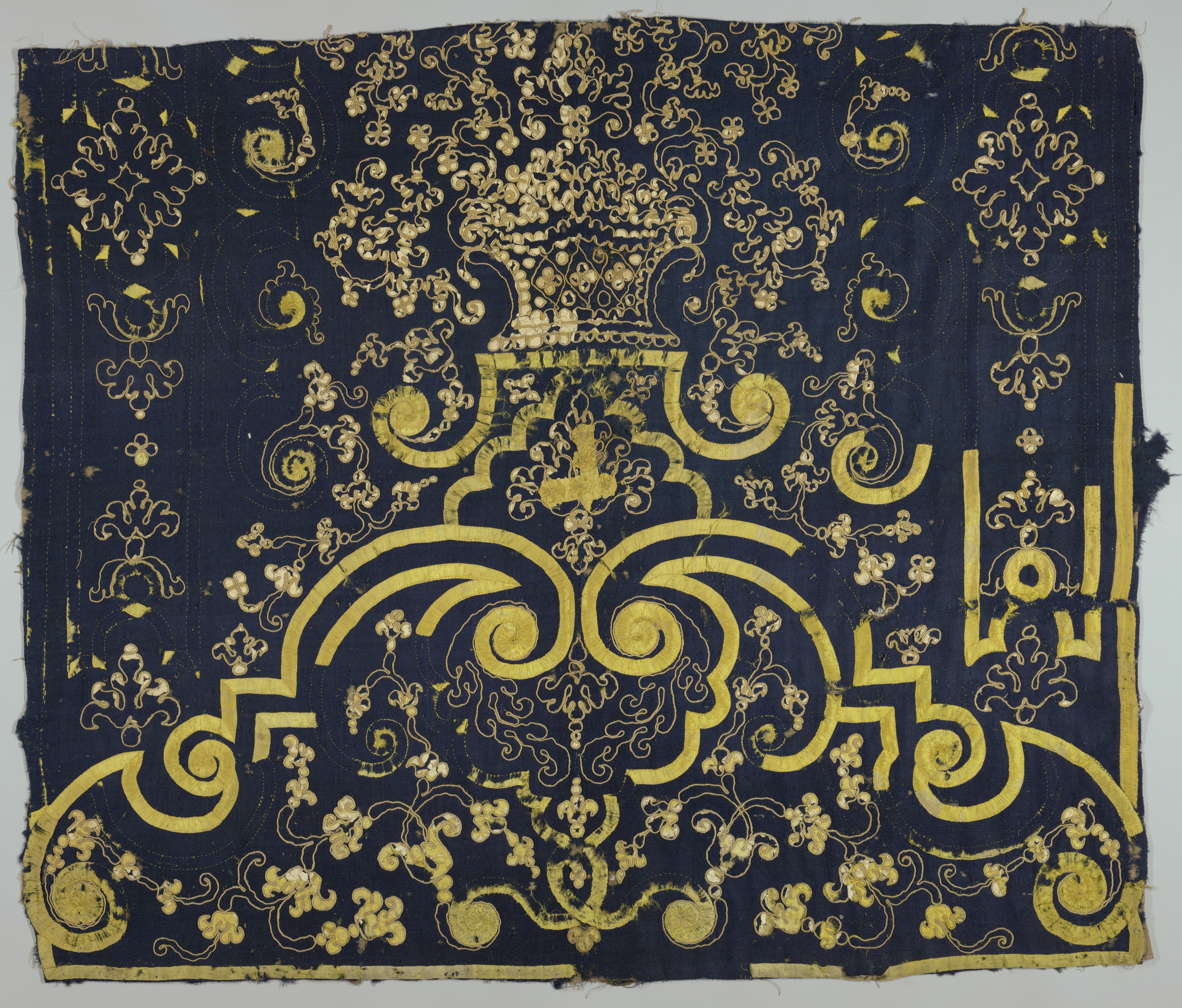 Bed Hangings And Bed Cover (Iran); silk ribbon and chenille on a wool foundation; H x W (a): 110 x 132.5 cm (43 5/16 x 52 3/16 in.) H x W (b): 175.5 x 140 cm (5 ft. 9 1/8 in. x 55 1/8 in.) H x W (c): 198 x 136.8 cm (6 ft. 5 15/16 in. x 53 7/8 in.); Gift of Ogden Codman; 1909-5-1-a/c