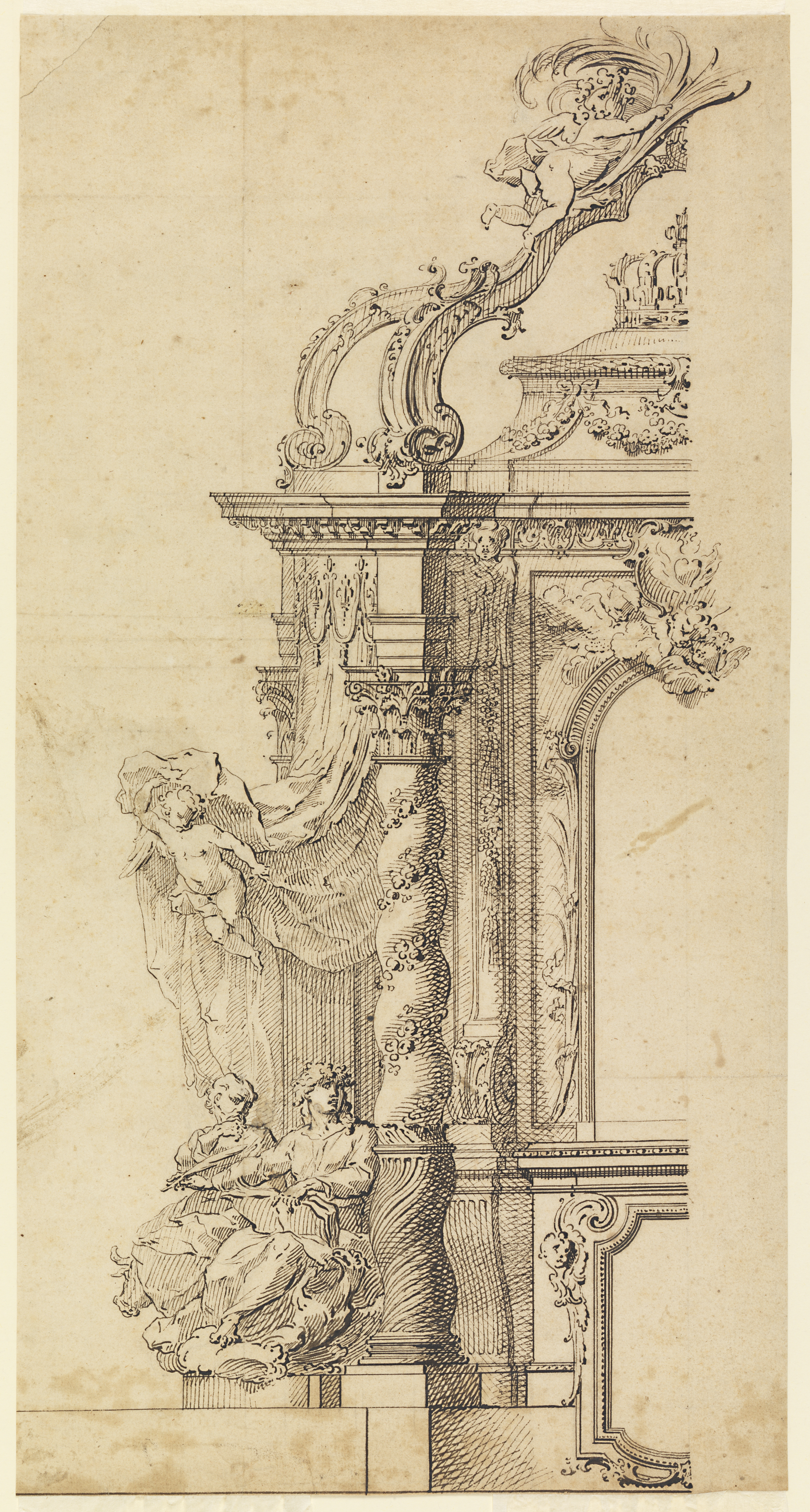 This is a Drawing. It was attributed to Gilles-Marie Oppenord. It is dated ca. 1700 and we acquired it in 1911. Its medium is pen and ink, black chalk on paper. It is a part of the Drawings, Prints, and Graphic Design department.
