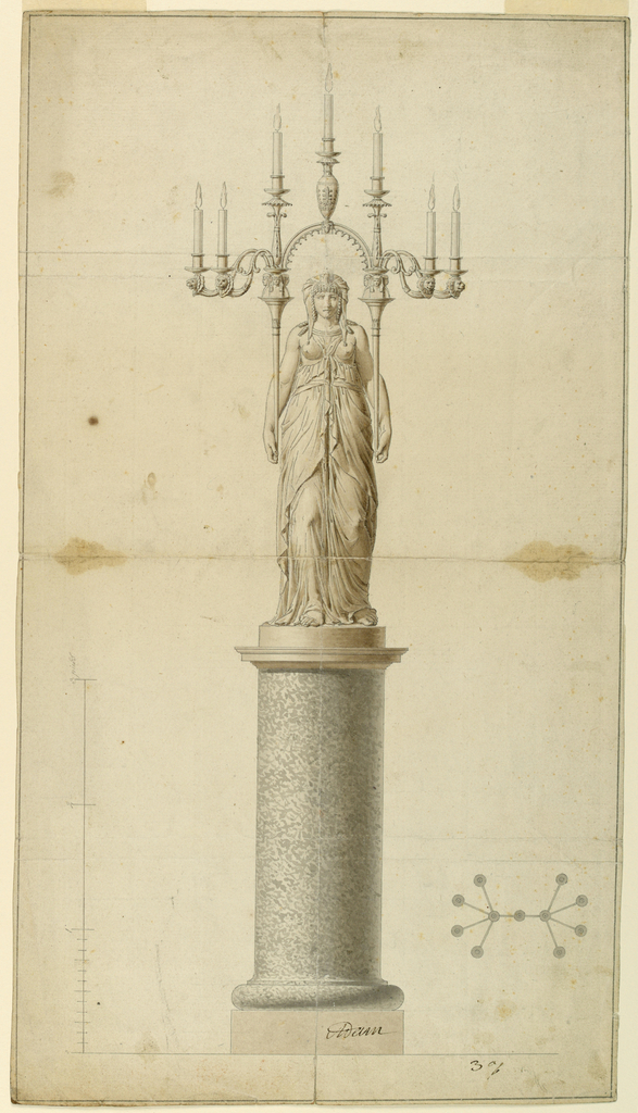 Drawing, Design for a Candelabrum; Possibly by Johann Jacob (ca. 1762–92); France; graphite, pen and black ink, brush and sepia wash, black ink on paper; 46.7 x 26.2 cm (18 3/8 x 10 5/16 in.); Purchased for the Museum by the Advisory Council; 1911-28-503