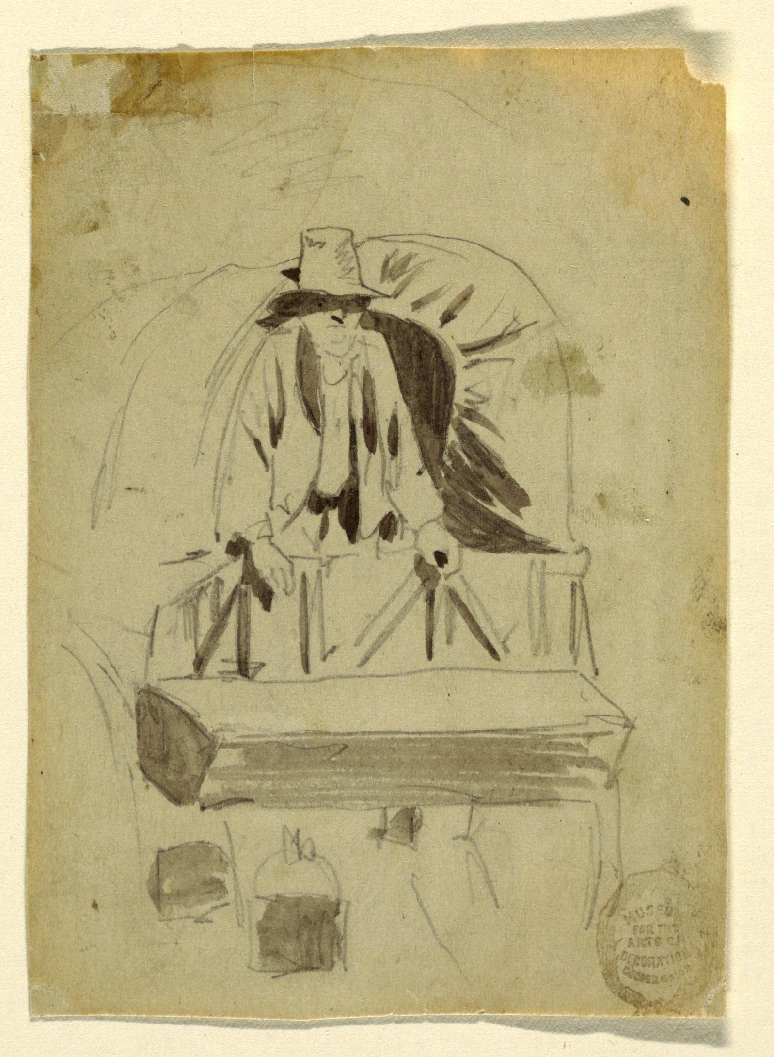 Drawing, Back of an Army Wagon; Winslow Homer (American, 1836–1910); USA; graphite, brush and gray wash on pasteboard; 12.1 x 8.7 cm (4 3/4 x 3 7/16 in.); Gift of Charles Savage Homer, Jr.; 1912-12-145-a