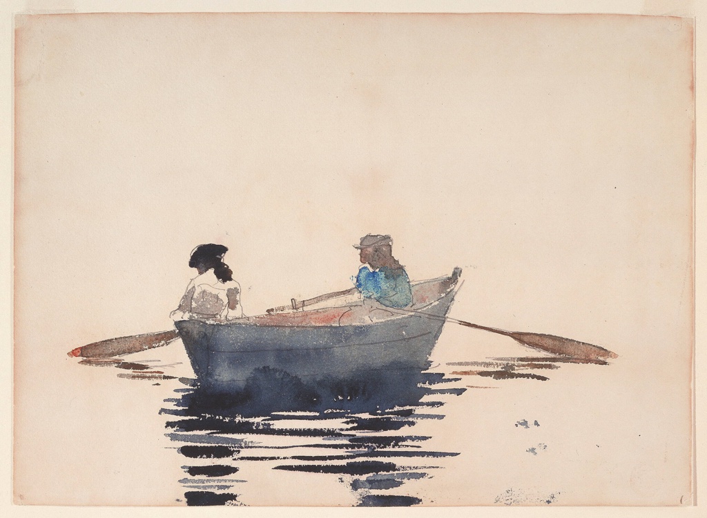 Drawing, Two Girls in a Rowboat; Winslow Homer (American, 1836–1910); USA; brush and watercolor, graphite on heavy cream wove paper; 24.3 x 33 cm (9 9/16 x 13 in.); Gift of Charles Savage Homer, Jr.; 1912-12-223