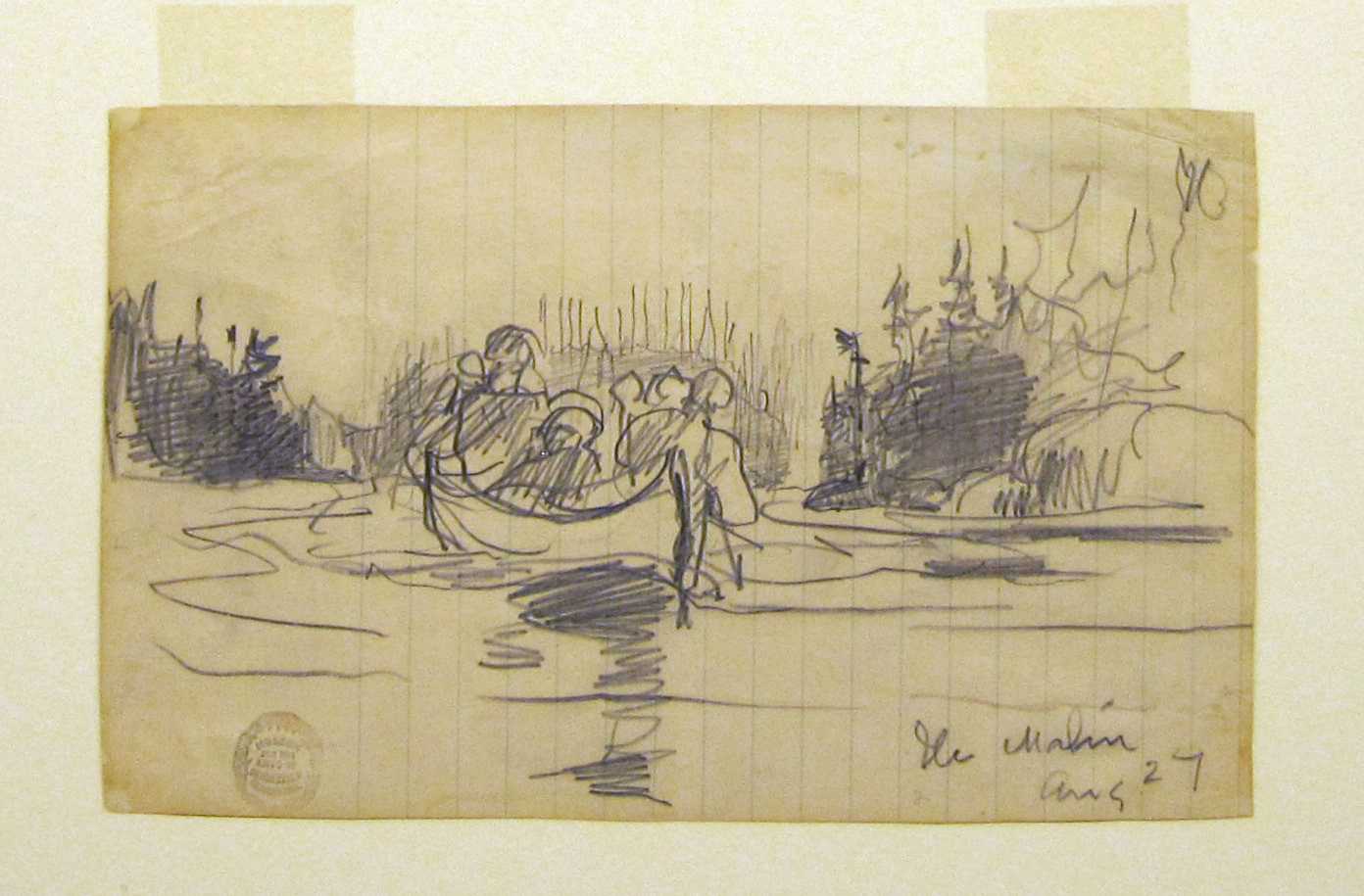Drawing, Canoe with Three Men, Ile Maligne, Quebec