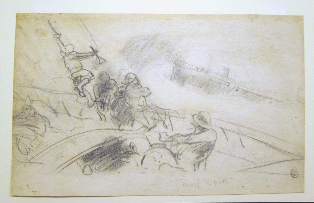 Drawing, Hard-a-Port; Winslow Homer (American, 1836–1910); USA; charcoal on off-white paper; 30.7 x 49.7 cm (12 1/16 x 19 9/16 in.); Gift of Charles Savage Homer, Jr.; 1912-12-42