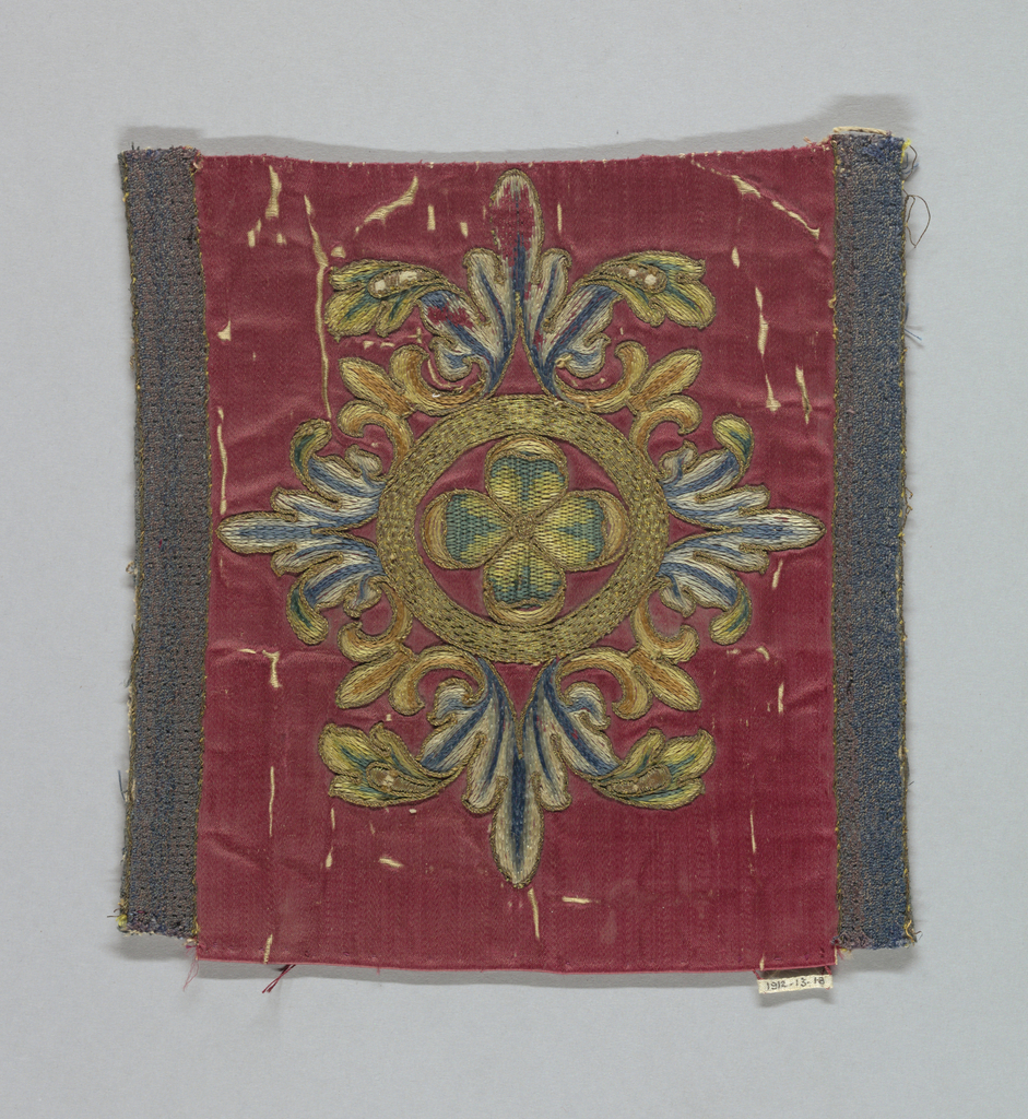 Fragment; silk, metallic thread; H x W: 22.5 × 21 cm (8 7/8 × 8 1/4 in.); Gift of Mrs. Edward Luckemeyer; 1912-13-18