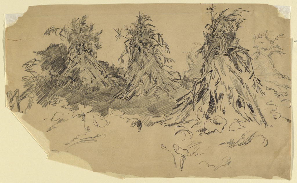 Drawing, Cornstalks; Walter Shirlaw (American, b. Scotland, 1838–1909); USA; graphite on paper; 21.5 × 34 cm (8 7/16 × 13 3/8 in.); Gift of Mrs. Walter Shirlaw; 1912-16-98