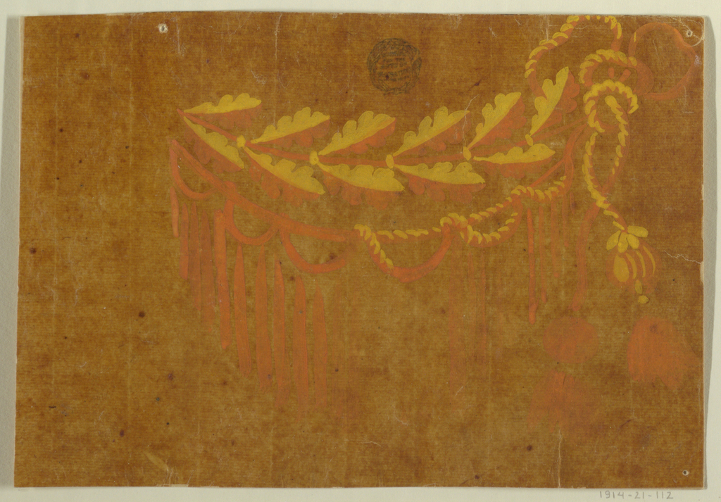 This is a Drawing. It was designed by Fabrique de Saint Ruf. It is dated 1800–1825 and we acquired it in 1914. Its medium is brush and orange, yellow gouache on glazed tracing paper. It is a part of the Drawings, Prints, and Graphic Design department.
