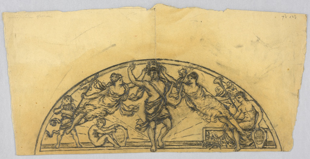 Drawing, Study for "Apollo," Metropolitan Opera, New York, NY; Francis Augustus Lathrop (American, 1849 - 1909); USA; black pastel crayon, graphite on paper; 22.1 × 45 cm (8 11/16 × 17 11/16 in.); 1914-38-195