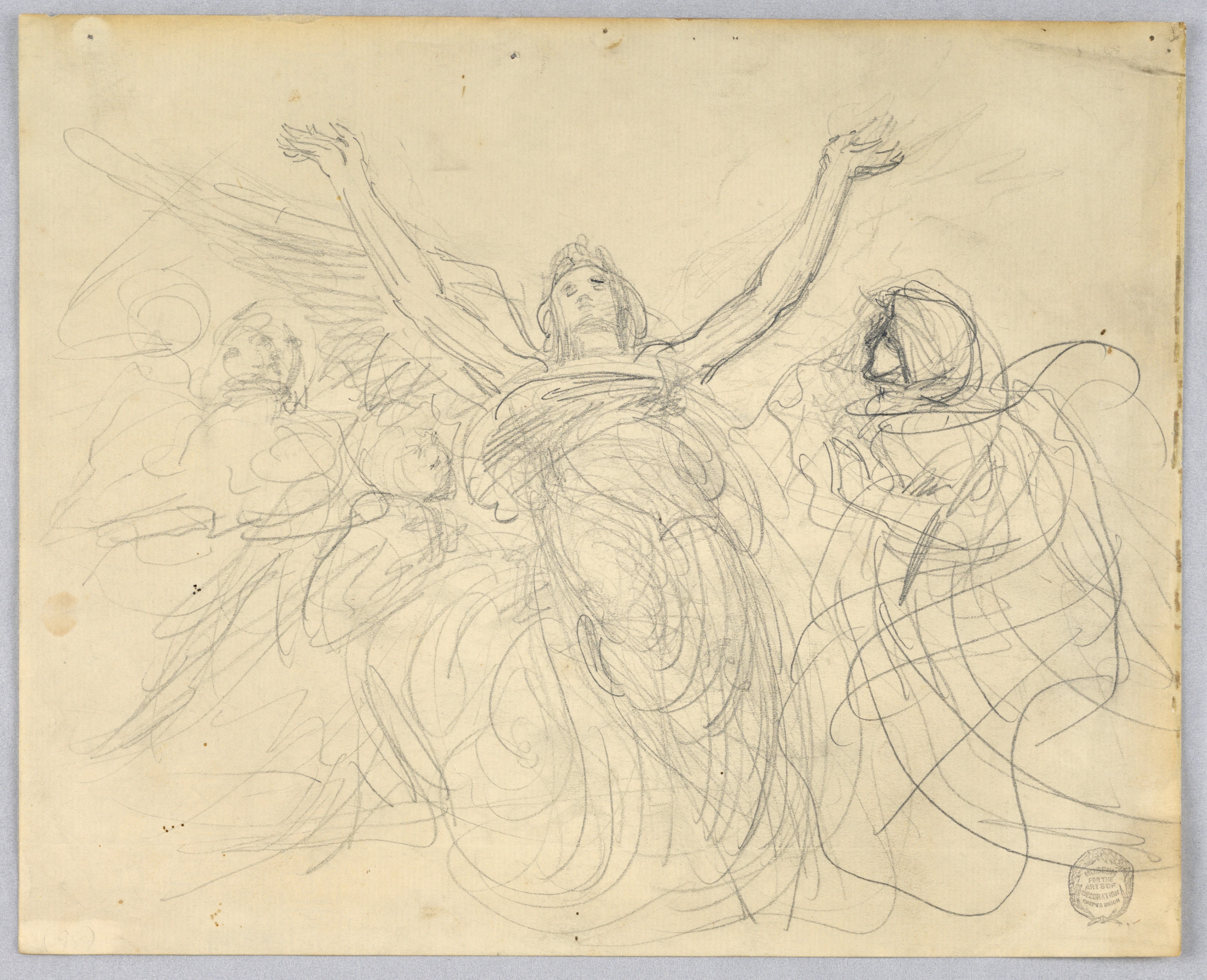 Drawing, Group of Angels; Francis Augustus Lathrop (American, 1849 - 1909); USA; graphite on laid paper; 22.9 × 28.3 cm (9 × 11 1/8 in.); 1914-38-235