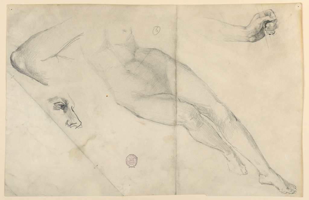 Drawing, Nude Study; Francis Augustus Lathrop (American, 1849 - 1909); USA; graphite on paper; 26.5 × 41.1 cm (10 7/16 × 16 3/16 in.); 1914-38-328
