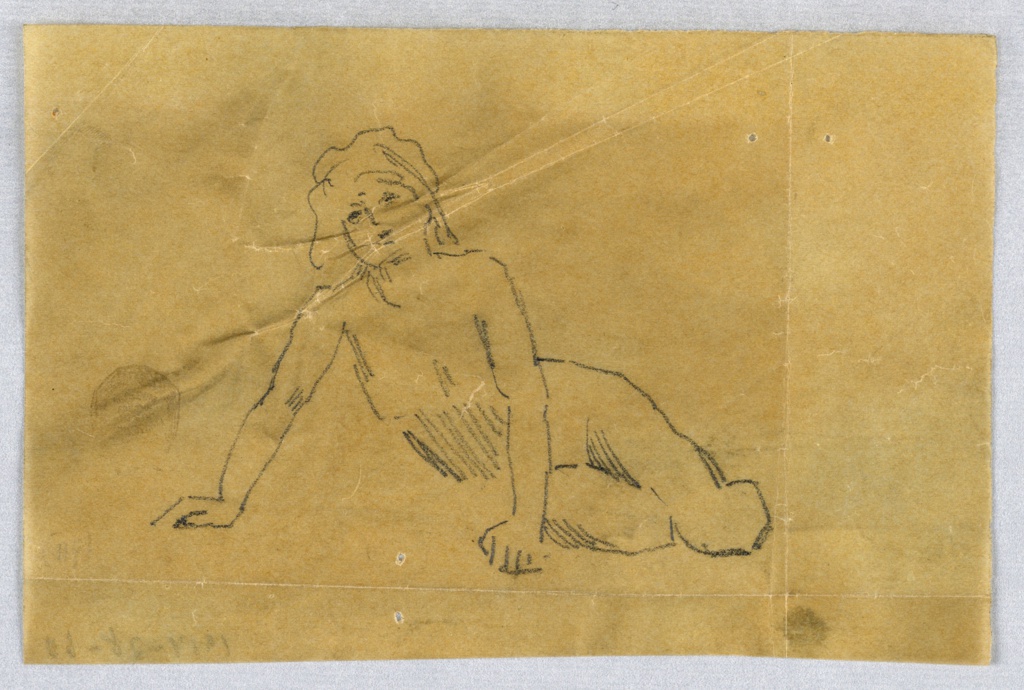 Drawing, Sketch for Putto; Francis Augustus Lathrop (American, 1849 - 1909); USA; graphite on tracing paper; 11.3 × 17 cm (4 7/16 × 6 11/16 in.); 1914-38-60