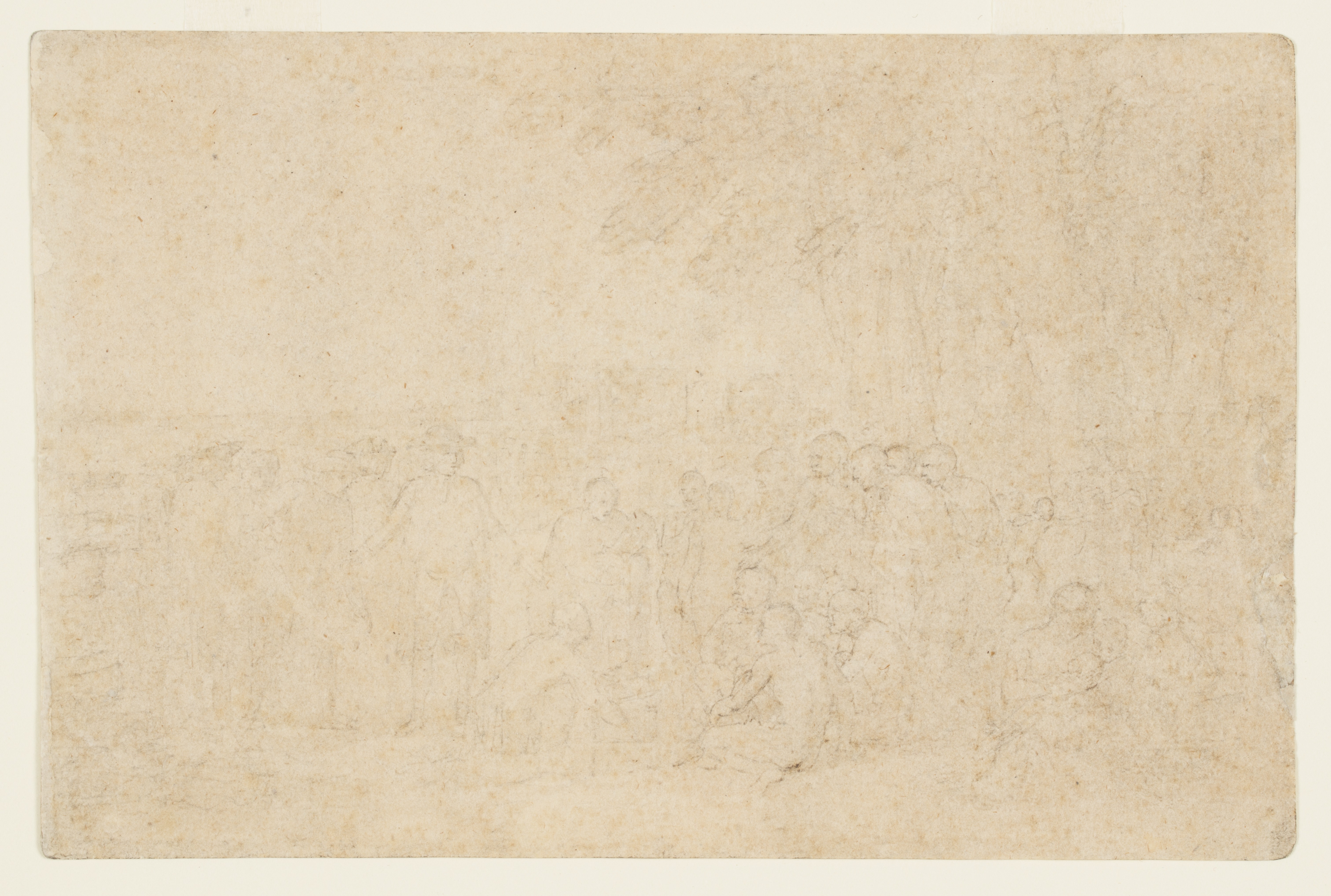 Drawing, Study for "Penn's Treaty with the Indians"; (Benjamin West, American, 1738 - 1820); USA; graphite, pen and ink on cream laid paper; 13.5 × 20.5 cm (5 5/16 × 8 1/16 in.); 1915-13-1