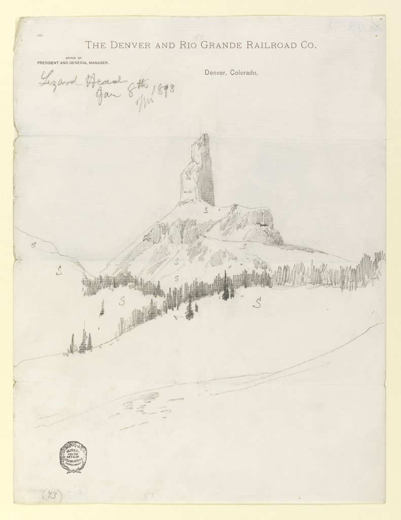 Inscribed in graphite, upper left: Lizard Head/ Jan 8th l893/ TM; again "S" notations indicating snowy areas throughout. Inscribed by a later hand in graphite, lower left: (73) / 51