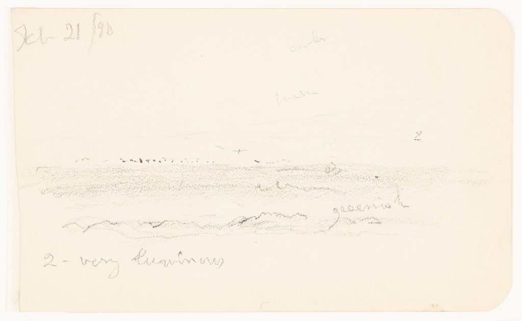 This is a Drawing. It was created by Frederic Edwin Church. It is dated February 21, 1890 and we acquired it in 1917. Its medium is graphite on off-white wove paper. It is a part of the Drawings, Prints, and Graphic Design department.
