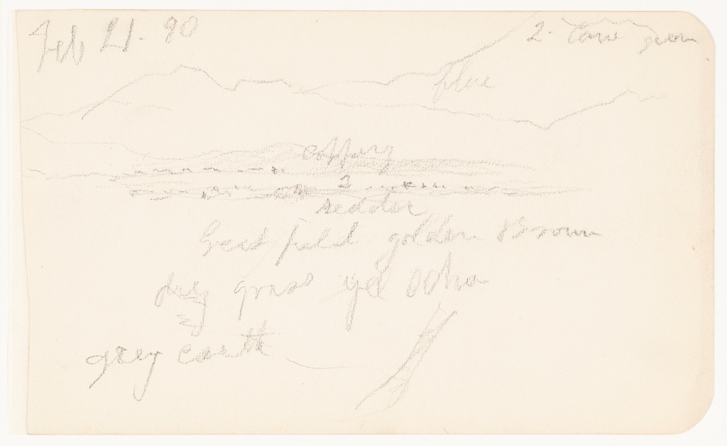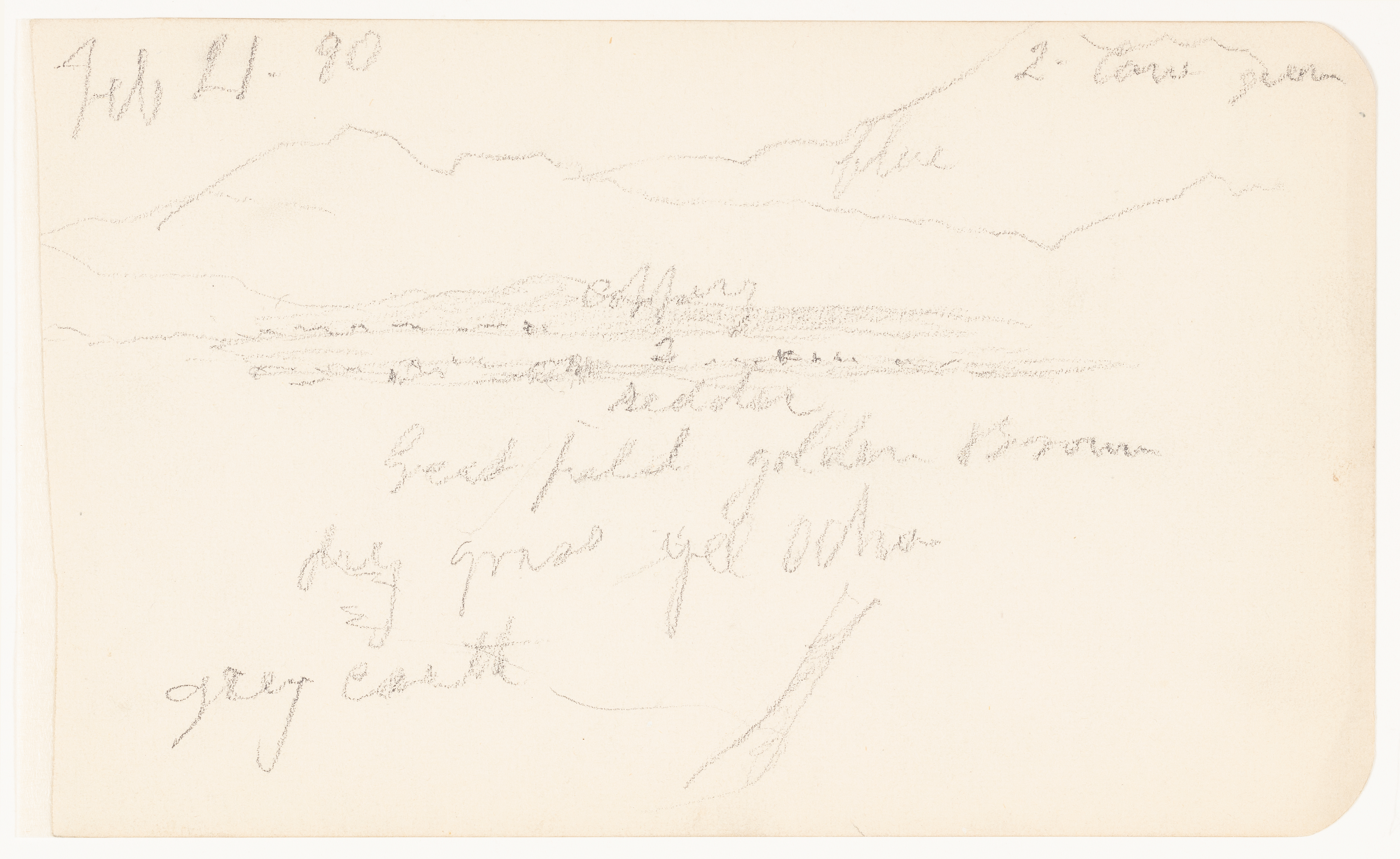 This is a Drawing. It was created by Frederic Edwin Church. It is dated February 21, 1890 and we acquired it in 1917. Its medium is graphite on off-white wove paper. It is a part of the Drawings, Prints, and Graphic Design department.