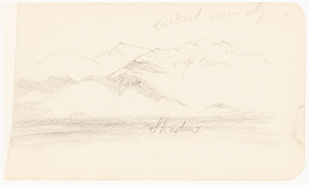This is a Drawing. It was created by Frederic Edwin Church. It is dated February–April 1889 and we acquired it in 1917. Its medium is graphite on off-white wove paper; verso: graphite. It is a part of the Drawings, Prints, and Graphic Design department.