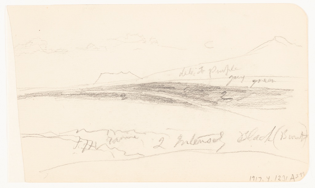 This is a Drawing. It was created by Frederic Edwin Church. It is dated February–April 1889 and we acquired it in 1917. Its medium is graphite on off-white wove paper; verso: graphite. It is a part of the Drawings, Prints, and Graphic Design department.
