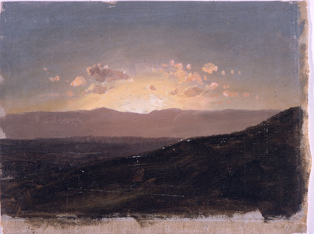 Drawing, Oil sketches: Sunset, Hudson, New York; Frederic Edwin Church (American, 1826–1900); USA; brush and oil on canvas; 27.4 × 35.9 cm (10 13/16 × 14 1/8 in.); Gift of Louis P. Church; 1917-4-1346-a
