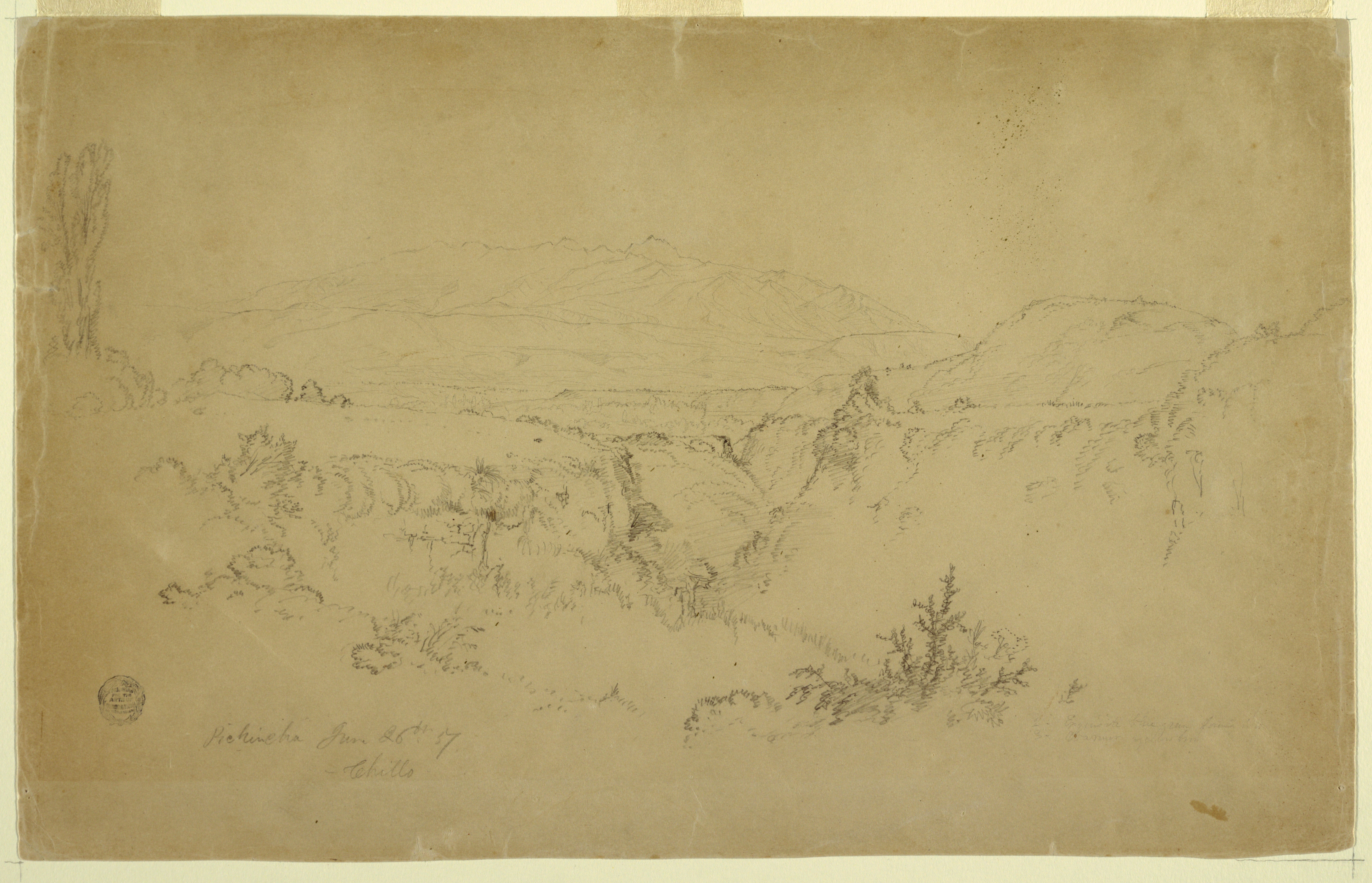 <ref name=CH>{{cite web |url=https://www-5.collection.cooperhewitt.org/objects/18196101/ |title=Drawing, Pichincha from the Chillo Valley, Ecuador |author=Cooper Hewitt, Smithsonian Design Museum |accessdate=20 December 2025 |publisher=Smithsonian Institution}}</ref>