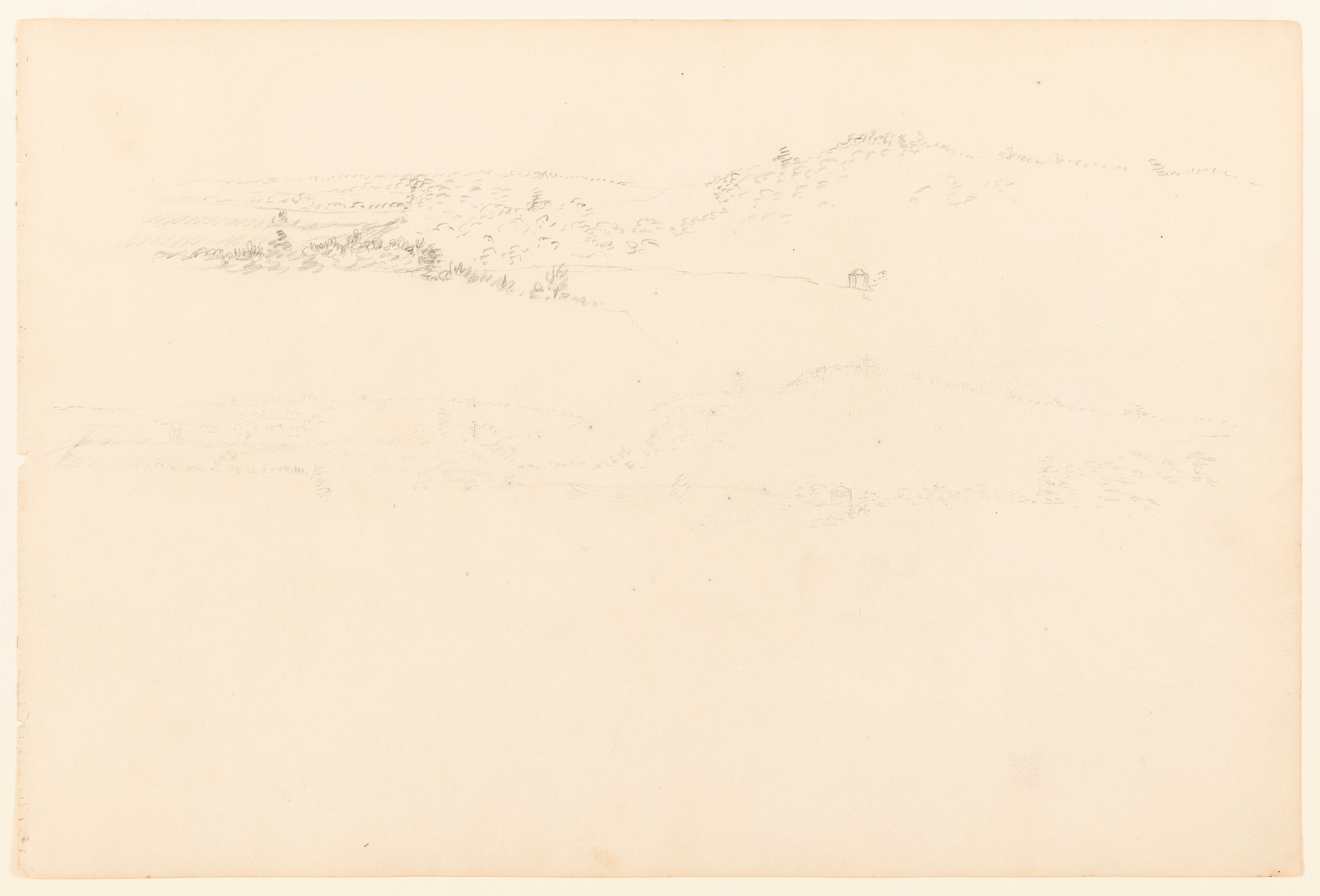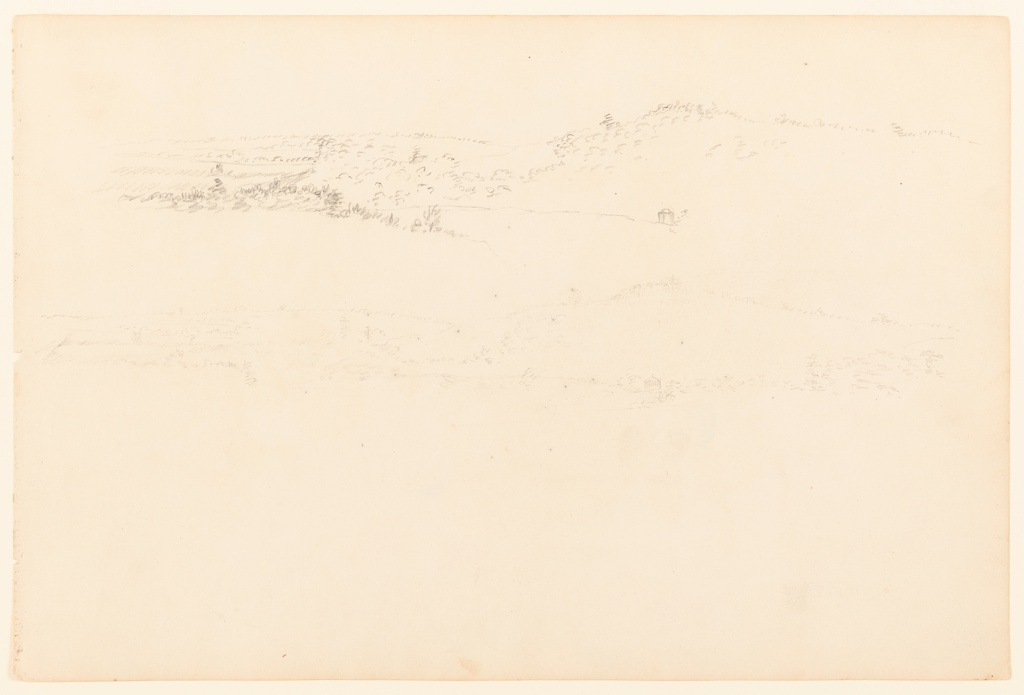 Drawing, Distant Views of a Wooded Hill, Catskill, New York; Frederic Edwin Church (American, 1826–1900); USA; graphite on tan wove paper; 25.7 × 38.8 cm (10 1/8 × 15 1/4 in.); Gift of Louis P. Church; 1917-4-27-b