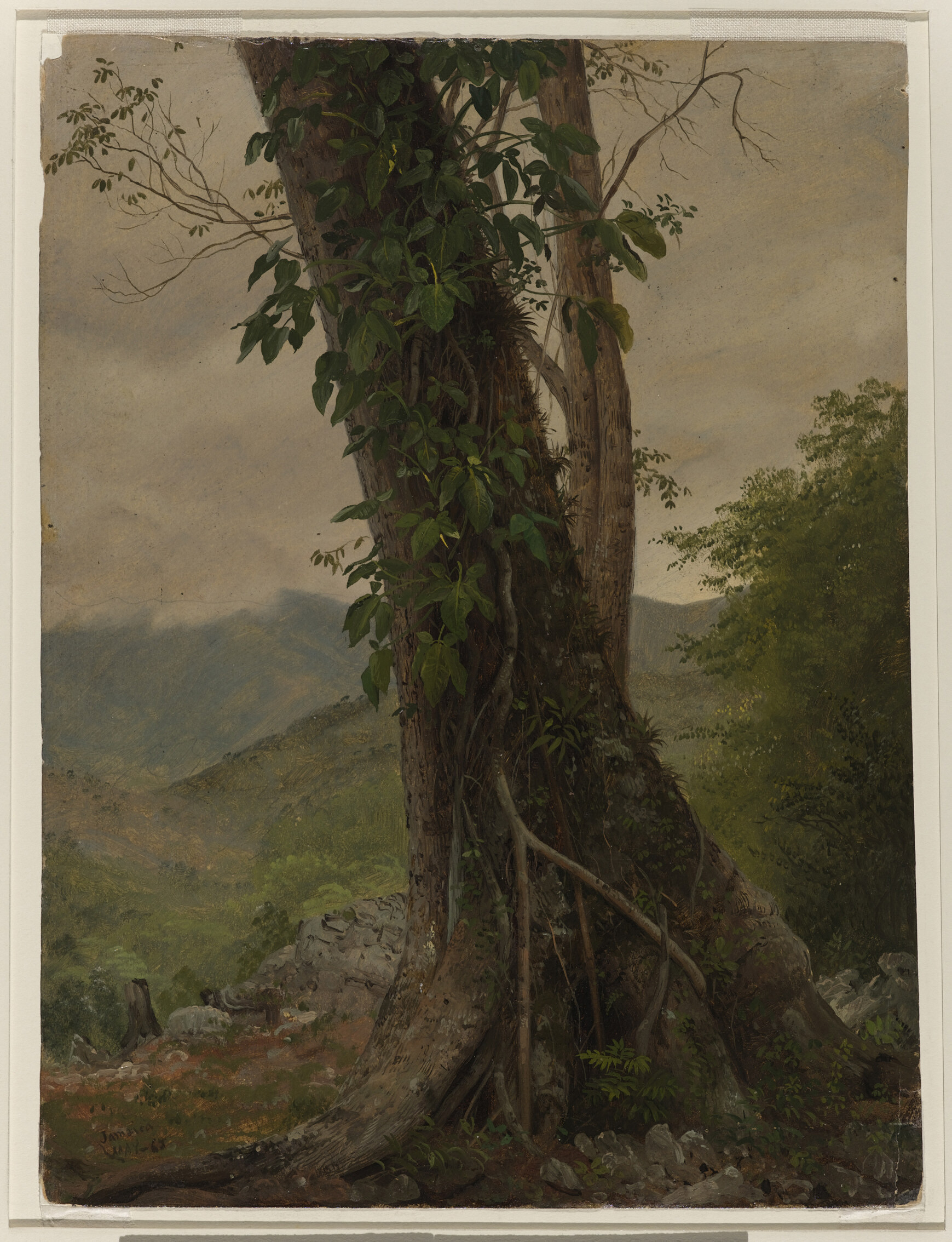 Drawing, Tree with Vines, Jamaica; Frederic Edwin Church (American, 1826–1900); USA; brush and oil, graphite on paperboard; verso: graphite; 30.4 × 23 cm (11 15/16 × 9 1/16 in.); Gift of Louis P. Church; 1917-4-342-a