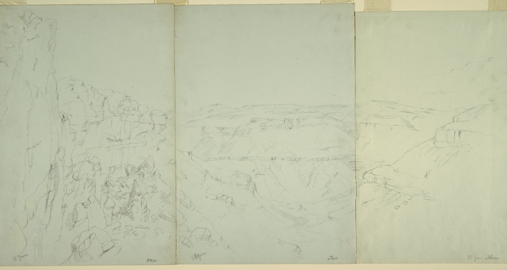 Drawing, El Yemen Valley, Part One; Frederic Edwin Church (American, 1826–1900); USA; graphite on gray-green wove paper; 44.8 × 30.9 cm (17 5/8 × 12 3/16 in.); Gift of Louis P. Church; 1917-4-500-a