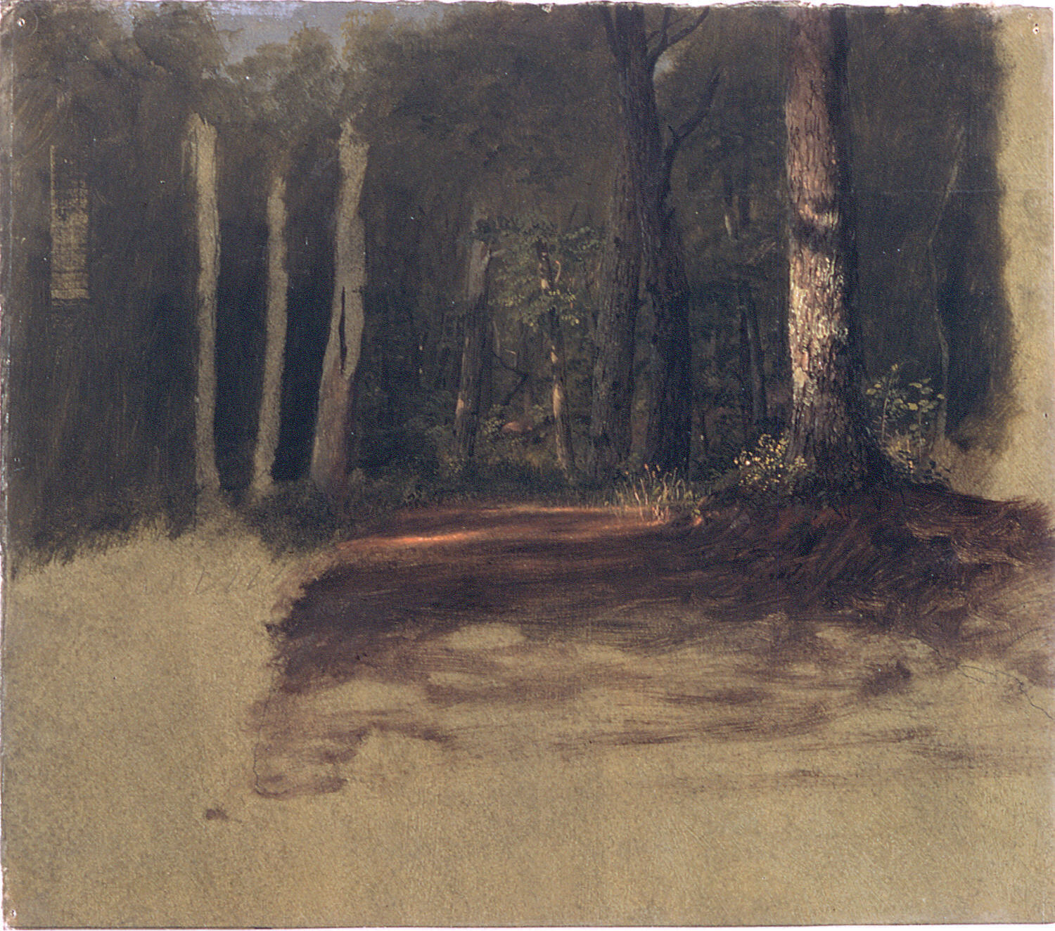Drawing, A Road into the Woods; Frederic Edwin Church (American, 1826–1900); USA; oil and graphite on paperboard; 27.7 x 31.4 cm (10 7/8 x 12 3/8 in.); Gift of Louis P. Church; 1917-4-589-a