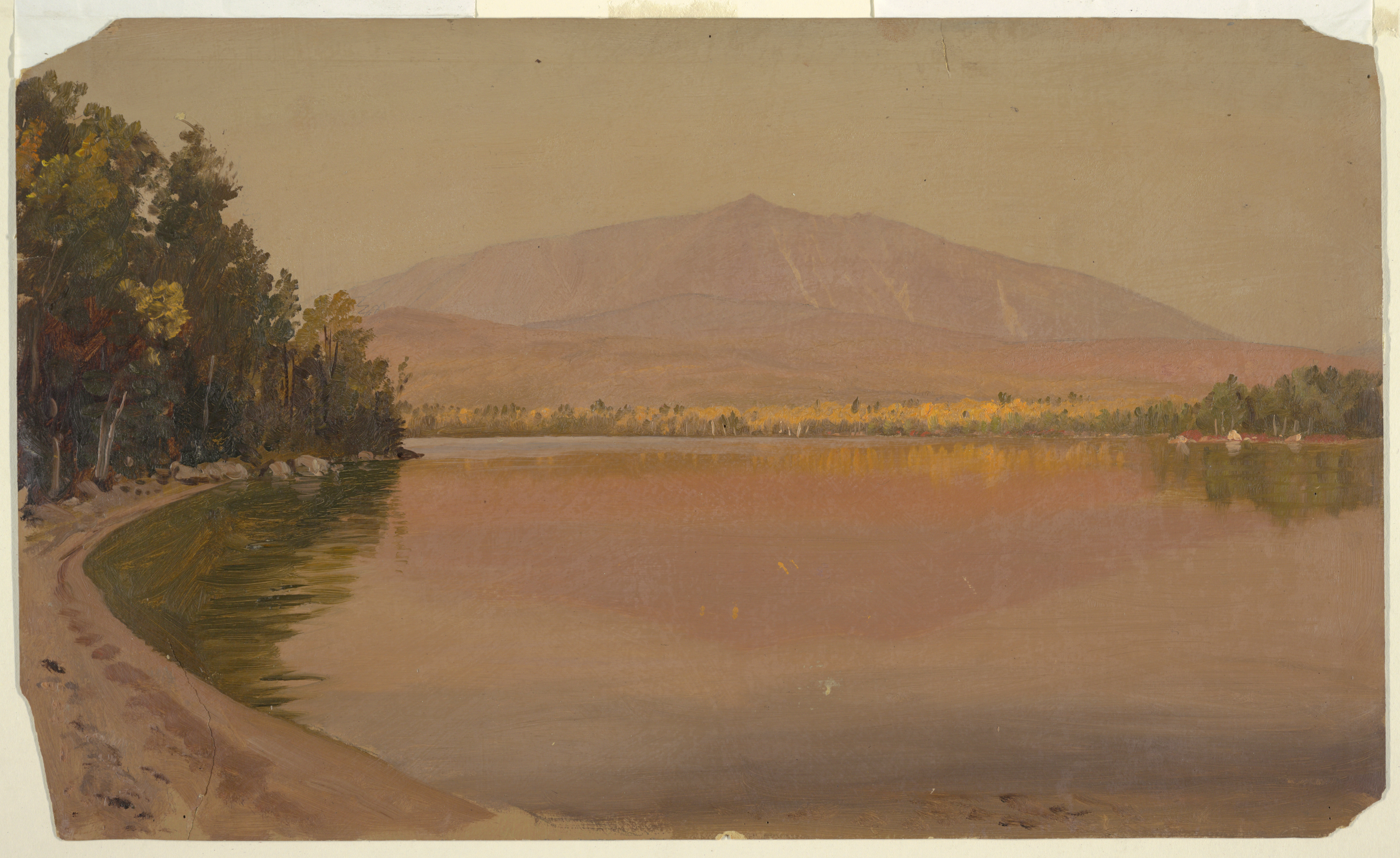 Drawing, Mt. Katahdin from Togue Pond, Maine; Frederic Edwin Church (American, 1826–1900); USA; oil and graphite on paperboard; 30.4 × 50.5 cm (11 15/16 × 19 7/8 in.); Gift of Louis P. Church; 1917-4-627