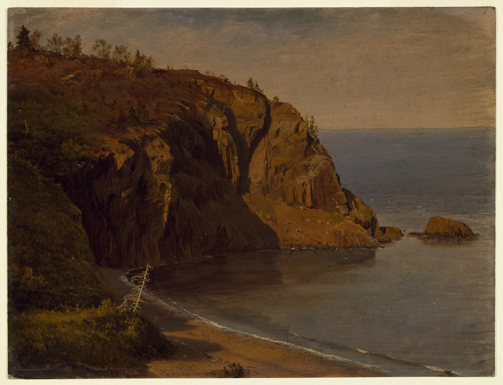 Drawing, Coast of Grand Manan Island, Canada; Frederic Edwin Church (American, 1826–1900); USA; oil and graphite on paperboard; 30.8 × 40.7 cm (12 1/8 × 16 in.); Gift of Louis P. Church; 1917-4-649-a